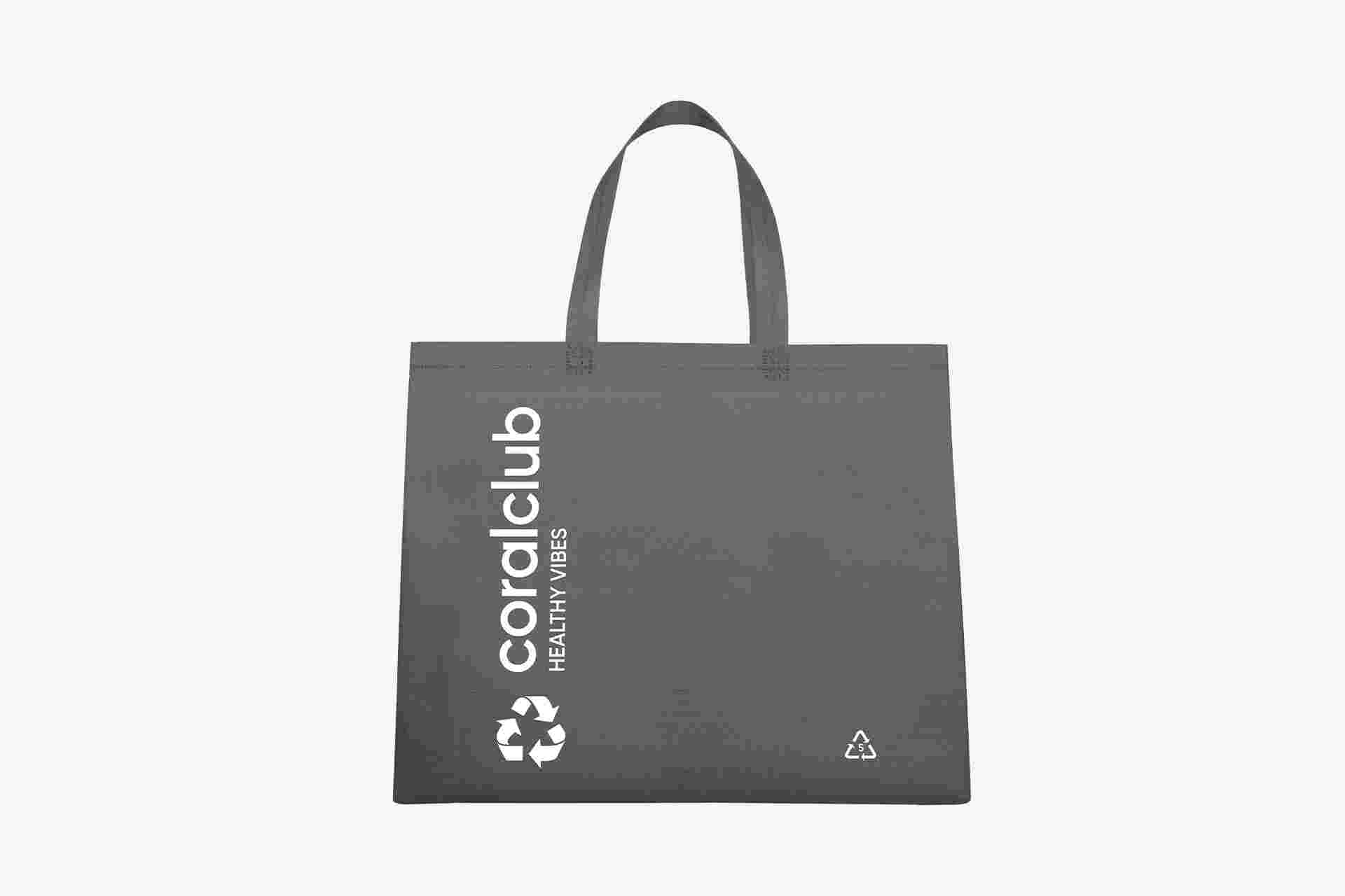 Sturdy reusable spunbond bag with long handles.